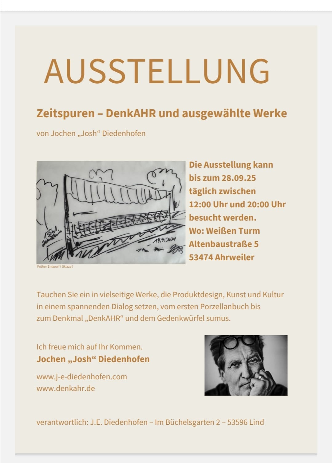 Zeitspuren – DenkAHR und ausgewählte Werke von Jochen Diedenhofen bis 28.9 täglich zwischen 12:00 und 20:00 Uhr